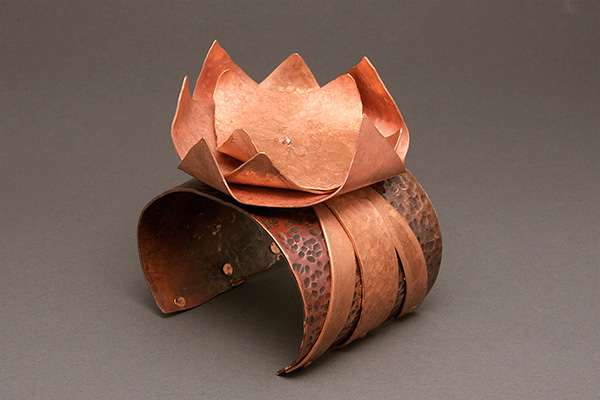 Yeesh, I had no idea it had been this long since I posted! The spring semester at Phoenix College has started, I'm still working full time at the Heard and I just finished teaching a 6 week hammer setting class at the MAC. I'm still teaching enameling at MAC and I'm currently teaching casting at the Phoenix Center while John T. is on sabbatical this semester. Needless, to say, time has been tightly scheduled with practically no free time of late. And, starting in a couple of weeks I'm taking a short course in html5 and css3 at MCC through May! I haven't had a chance to make much of my own art for a while but my students at PC are going gangbusters! I am going to have to ask my MAC enamelists if they'll leave me their stuff to be photographed because they are doing some great work as well, but for now here is some of what my PC students are doing. The Jewelry I students had to make a bracelet with texture and rivets. My Jewelry II students had to make a neckpiece with enamel. My independent study student worked on enamel and colored pencil on metal. I'm very proud of all of them.